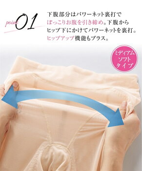 締めつけすぎないのに下腹部や骨盤周り、ヒップ下など気になるところはパワーネット裏打でしっかりシェイプ。